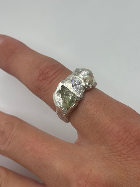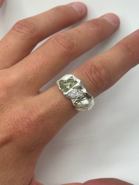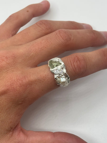 pearl + cubic zirconia + sea glass